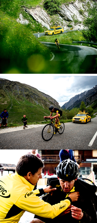Unlike Quintana, this rider was not thousands of miles from his birth place, but riding on home roads. Nicolas Roux has been first to finish in the last two editions of L’Etape du Tour, most recently in an edition begun in the home town of his sponsor. Roux is our guide to the region and its roads, and his story, extracted through chinks in a wall of modesty (he fails to mention a near 12-hour assault on the Tour du Mont Blanc record made only a week earlier, and in epic conditions, at our first meeting; it takes a chance conversation with a Mavic employee and a follow-up email to learn the details), is as inspiring as Quintana’s.