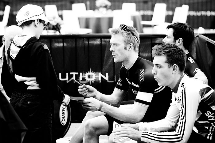 Great Britain’s phenomenal success in track competition and the continued growth of the Revolution Series are therefore not coincidental, but closely linked. The list of world and Olympic champions who learned their trade at “the Revs” is impressive. Pope names the aforementioned Kennaugh and Rapha Condor JLT’s Ed Clancy, among the stars who have consistently shone. Both rode to Olympic gold in the final of the men’s team pursuit at London 2012, and both have dominated this current series. Kennaugh lapped the field seven times en route to winning the points competition in round four, and Clancy has been victorious in almost every round. Securing the big names is his biggest challenge, Pope confides. Numerous external factors, from UCI World Cup events to home games for Manchester City FC, held in close proximity to the Manchester velodrome, all impinge on the rider line-up for any given round. Negotiations with riders and coaches begin long in advance.