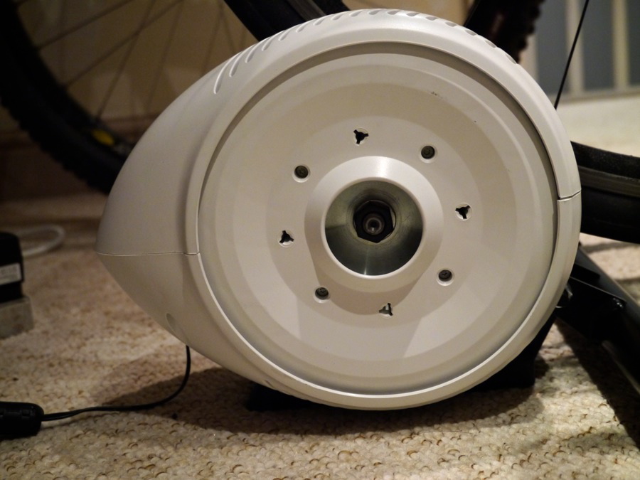 Indoors, we have already ascertained that this is a pretty quiet setup in comparison to, for example, the recently reviewed Tacx Booster. The road feel is excellent as the bike is attached to a hinge mechanism that allows your weight to push down on the roller rather than tightening the roller mechanism onto your tyre.
