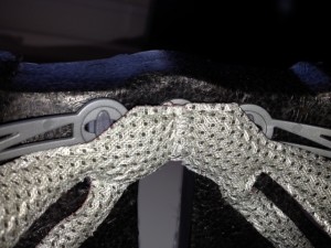 I was surprised to find that the odd strap loop didn’t cause any annoyance, presumably the padding that covers it solves that. However, the stitching at the front, connecting two pad inserts, should be made into one piece. After a couple of rides the threads began to split and can rub against your head and cause irritation.