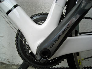 Have I made any changes to the R3? Well, a switch from the Shimano Dura-Ace 7850 wheels to Mavic’s R-SYS wheels gave the bike an increased agility and their extra lateral stiffness gave the Cervelo a more precise and pointy feel, especially handy around Crystal Palace’s tight and twisty circuit. The saddle was also changed for a Prologo Scratch for more comfort.