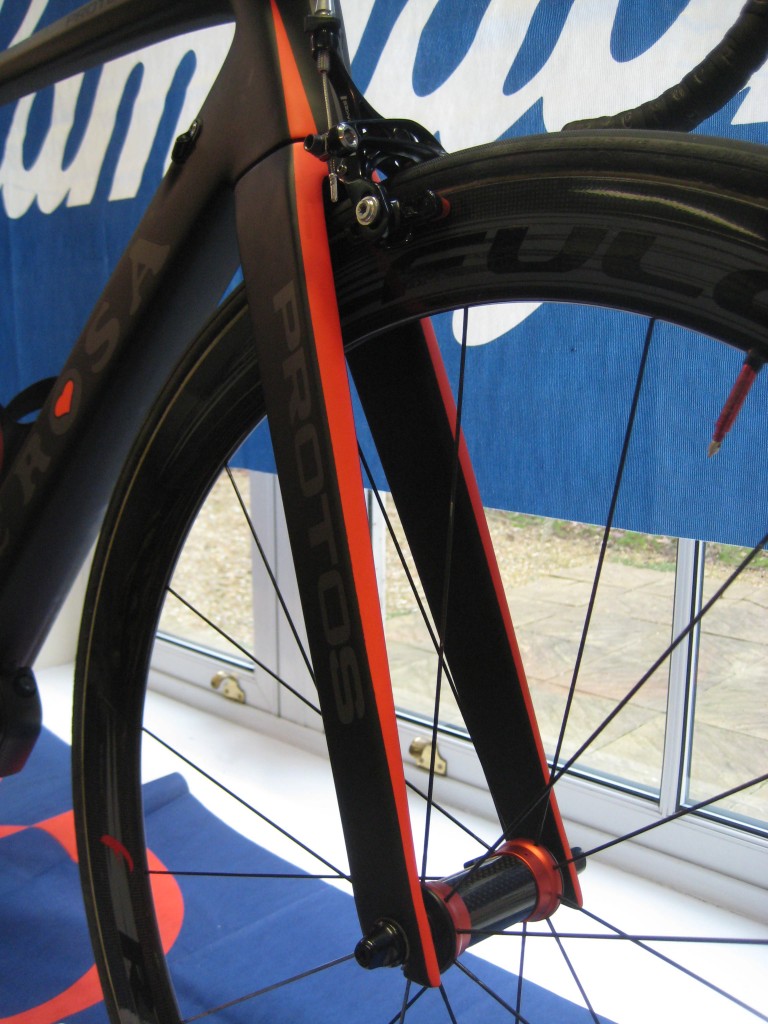 De Rosa’s UK distributor, i-ride.co.uk, sent us some preview shots ahead of the show but now we’ve seen it in the flesh, built up as a full bike. The price? Eye watering. Sure you want to know? Ok, somewhere in the region of £12-13k.