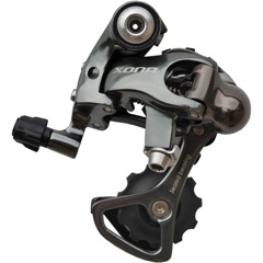Dual control shifters and a front mech accompany the rear mech pictured, and are available separately.