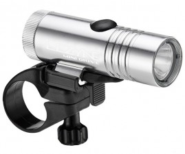 It’s powered by a single ‘hi-Lumen’ one watt LED with up to 24 hours run-time from three AAA batteries. Three modes cover high beam, low beam and flashing, while the tool-free fitting is easy to attach to the ‘bars.