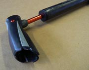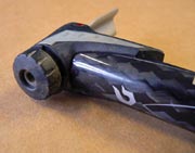 Blackburn have been making accessories like pumps, racks, lights, cages and tools for the last 30 years, and their experience clearly shows in the Air Stik mini pump. Blackburn were actually the first company to launch a dual stroke mini-pump, and the Air Stik CF is the companies latest such dual stroke pump. Dual stroke means, quite simply, that as well as air going into the tube on the push stroke, air also goes in as you extend the pump again. Very clever, and it means inflation times are a lot quicker than a traditional style pump.