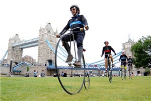 The riders covered 400 miles in five days before crossing Tower Bridge, ready to race for the Brooks Ordinary trophy on the one-mile Smithfield Market circuit.
