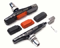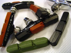 The new Tectronic brake pads are a forged alloy holder like a mountain bike V-brake shoe and they allow you to customise your pad set up. The friction inserts are designed to interlock together. The Pad-Lock washer system has been improved by incorporating the convex pivot adjustment into the backing plate – this reduces the need for all of those fiddly washers and domed spacers.