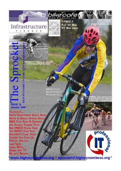 High Wycombe CC’s Magazine ‘The Sprocket’ January 2006 is now available. For those of you unfamiliar with it, it’s not just club news and views it’s also a very good read and you can download stacks of back issues too. Well worth a look.