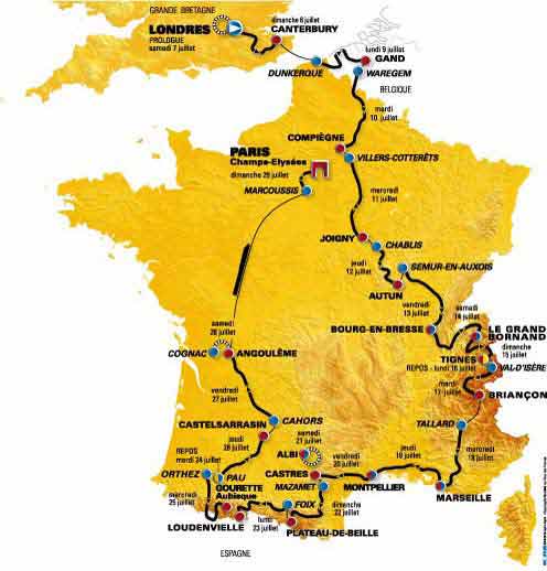 Saturday 7 July – Tour de France Prologue – a 7.9km individual sprint around central London, starting on Whitehall and taking in some of London’s most famous landmarks including Whitehall, the Houses of Parliament, Buckingham Palace and Hyde Park and finishing on the Mall. Timings: 13.00 Tour de France Publicity Caravan sets off ; 14.00 Riders warm up; 15.00 Race Start; 18.20 Race Ends.