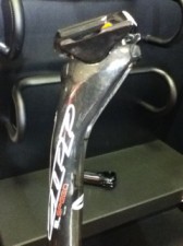 Brand new from Zipp, and due in the shops this April, is the 185 gram, SL Speed carbonseatpost, with a clamp profile designed to offer maximum fore and aft adjustment. This is the carbon version of Zipp’s Service Course aluminium post. Its low profile design is secured by two bolts. It comes in 27.2mm and 31.6mm diameters. A naked carbon finish with red and white decals gives an understated appearance.