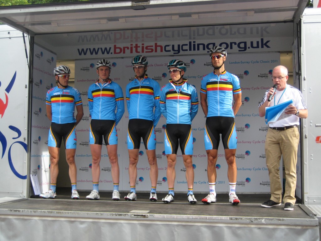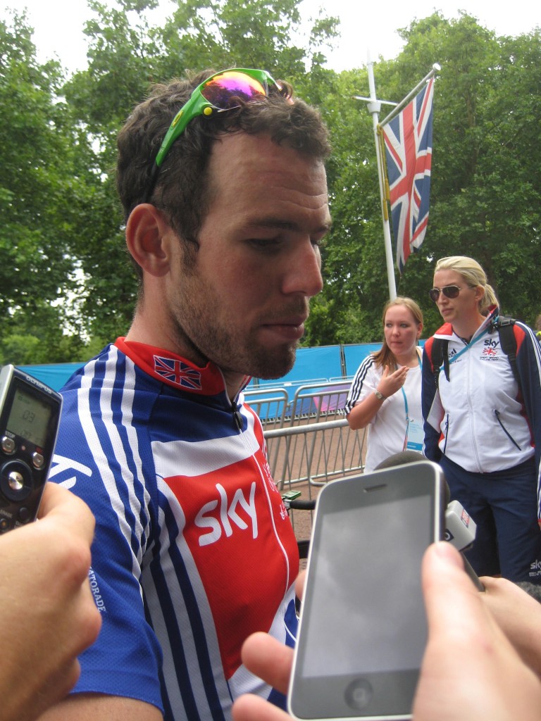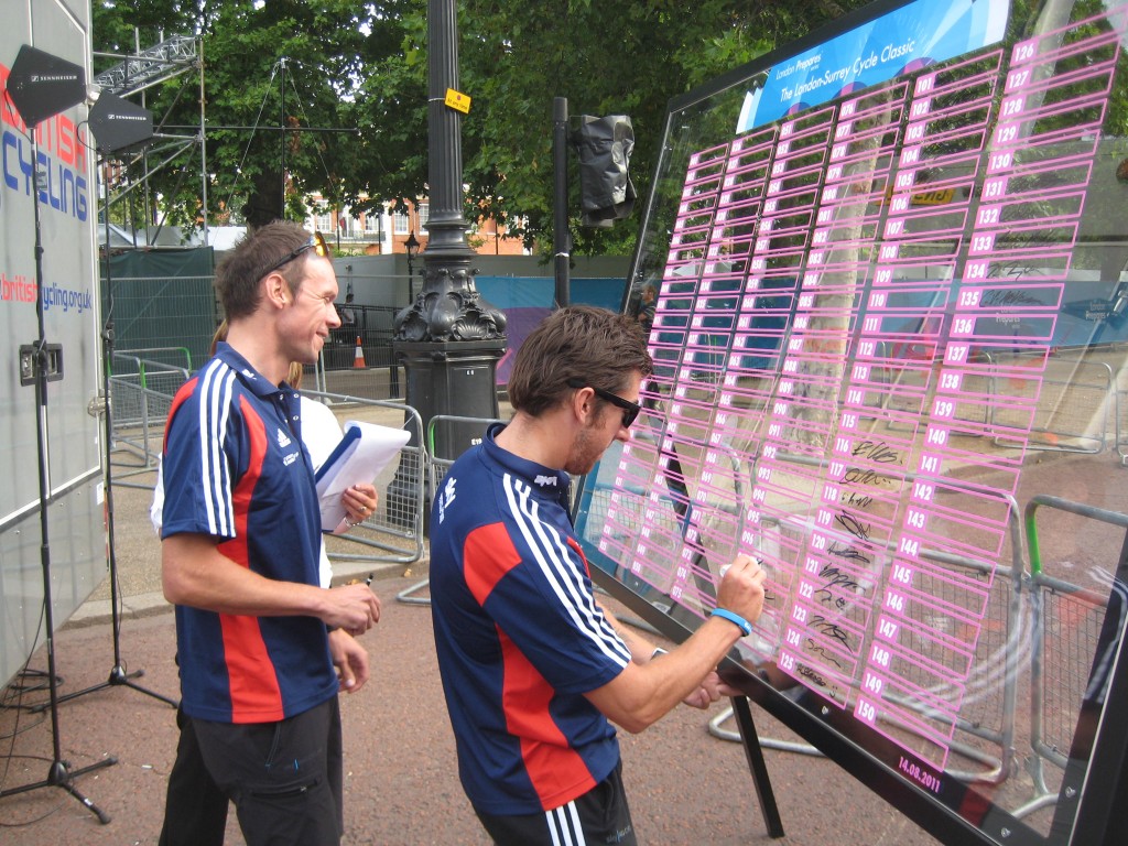 Mark Cavendish, riding for Great Britain with Alex Dowsett, Roger Hammond, Peter Kennaugh, Ian Stannard, signs on ahead of the London-Surrey Cycle Classic