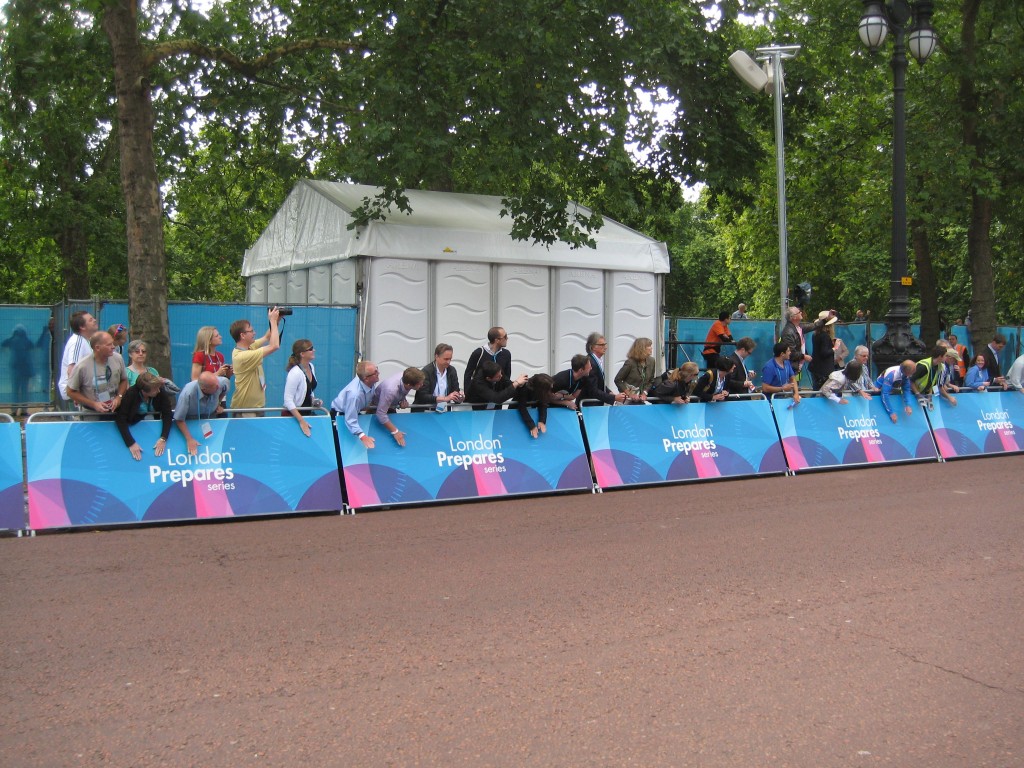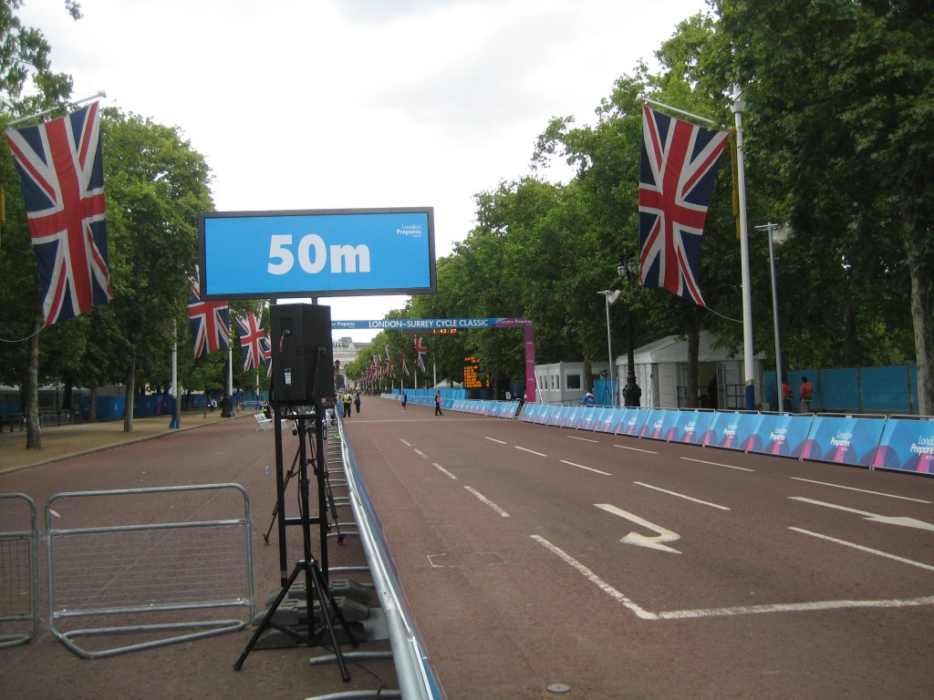 Buckingham Palace, where spectator access was unrestricted, marked 500m to go