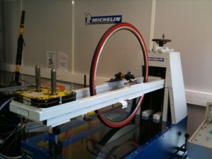 The tyre is used, as an alternative to Michelin’s tubulars, by the pros of the AG2R La Mondiale race team and is preferred in slippery conditions, so much so that, following the Tour de France stage nine crash on the treacherous descent of the Pas de Peyrol that claimed Alexandre Vinokourov, Jurgen Van den Broeck and Dave Zabriskie, AG2R’s Jean-Christophe Peraud dropped back to his team car and asked to swap his tubular-shod wheels for the new clinchers.