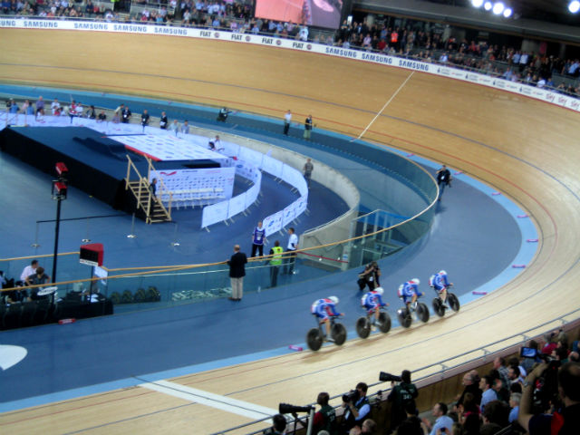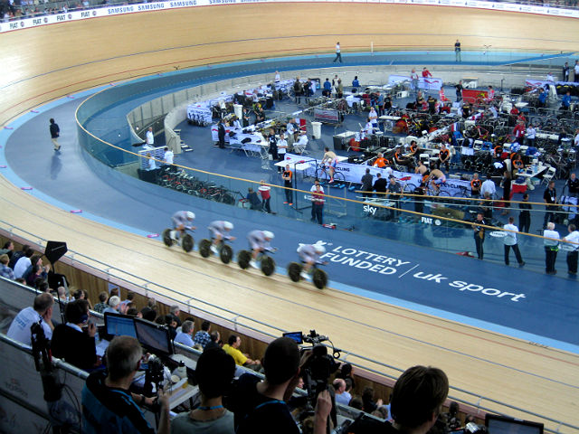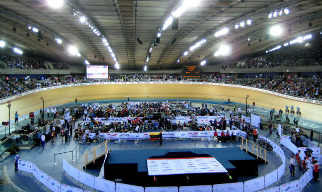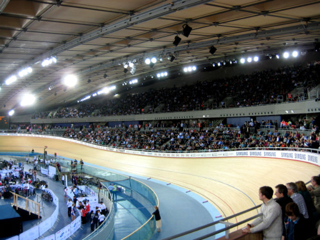 The 6,000-capacity velodrome has seats in two tiers, with spectators in the front row just inches from the action.