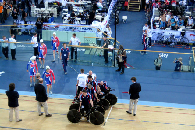 The Olympic velodrome saw its first competitive action on Thursday, when Great Britain’s men’s and women’s team pursuit squads qualified for finals against Australia and Canada respectively. Our reporter, George Scott, was there and took these behind-the-scenes photos.