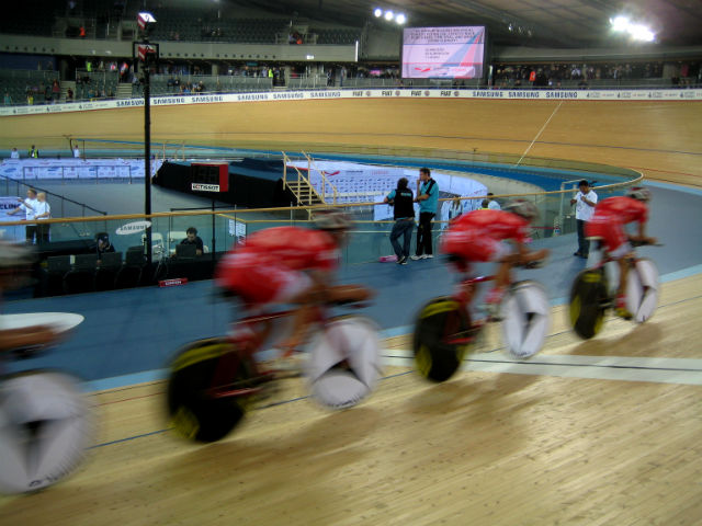 The track is made from Siberian pine, while the temperature in the velodrome is set at 28c in order to create super-fast racing conditions.