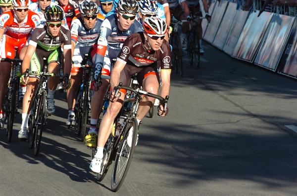 Radioshack-Nissan-Trek veteran Jens Voigt in his familiar position at the front of the peloton