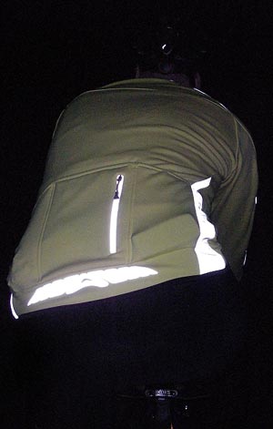 The jacket concentrates the reflective elements on areas relevant to a bike rider, especially on the front facing areas like arms and across the front of the shoulders. At the rear of the cuffs, which show well when indicating, the sections across the back are concentrated lower down, although it does have two strips down the back of the shoulders these are naturally less visible if you have a long and low riding position as I do.