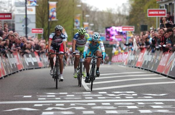 Enrico Gasparotto (Astana) launched a perfectly timed sprint to win the Amstel Gold Race ahead of Jelle Vanendert (Lotto-Belisol) and Peter Sagan (Liquigas-Cannondale).