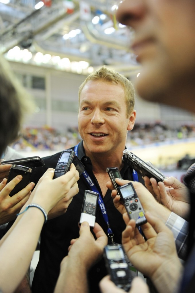 He may not have been racing, but Sir Chris Hoy was still the star of the show at the velodrome which bares his name