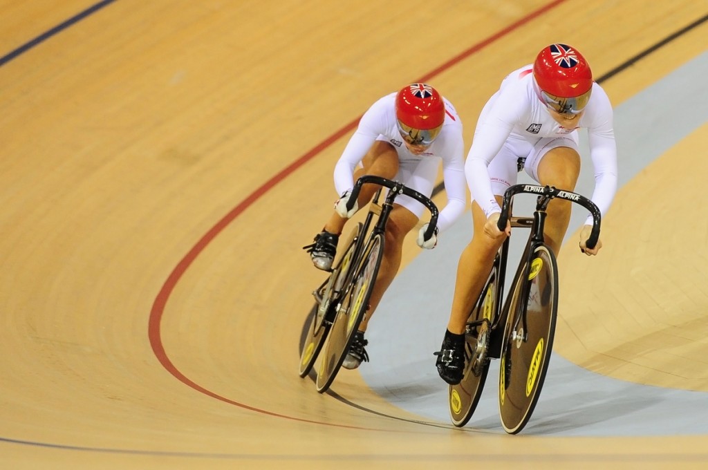 Becky James and Jess Varnish joined forces in the women’s team sprint to win Great Britain’s first gold medal of the weekend