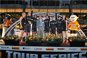An exciting first round of the Halfords Tour Series at Canary Wharf saw CyclePremier.com-Metaltek’s Tony Gibb take the final sprint for the individual win while local team Rapha-Condor-Sharp’s Dean Downing was the first to don the orange jersey of Halfords Tour leader.