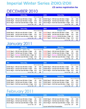 The 2010/11 Imperial Winter Series will kick-off on December 4 at the Hillingdon Cycle Circuit.