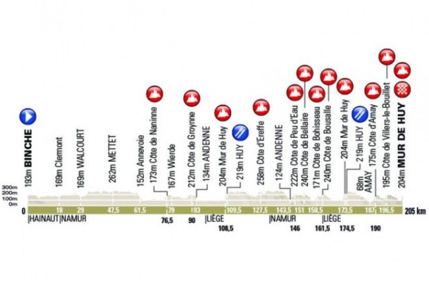 Twelve climbs pepper the 205km route of the second Ardennes Classic, La Fleche Wallonne, but it is invariably only on the final climb, the Mur du Huy, that the winner shows his hand.