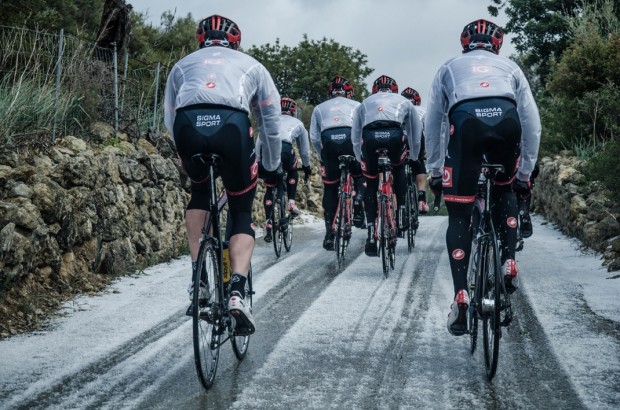 As I jump from a car brought rapidly to a halt by IG-Sigma Sport’s directeur sportif, Simon Howes, the wind nearly rips off the door. The temperature is some way below the balmy Balearic climes for which I had hoped and for which I am dressed, and the latest freezing shower has swept in. This is pre-season training on Mallorca, and it is time to begin lead-out drills.