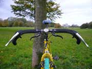 The pictures and spec of the bars don’t really prepare you for what they look like in the flesh. After they arrived from On-One, they sat on the workshop bench for a couple of days before I had the nerve to put them on the bike. Once on the bike, they looked weirder. Just look at the pics. I was beginning to wonder if there had been an awful cock-up at the handlebar bending factory as I wheeled my bike out onto the road for my first ride, under cover of darkness – I really wasn’t sure I wanted to be seen out with them in public.