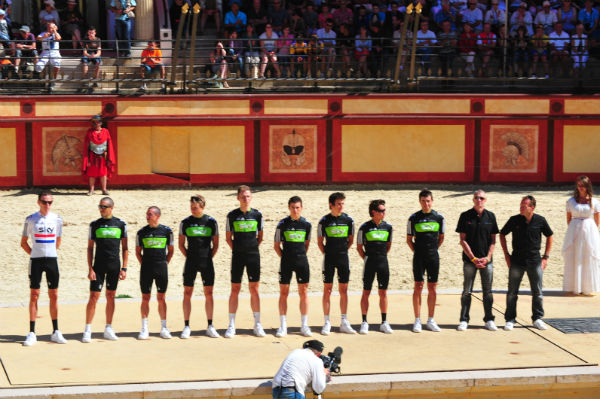 ON THE ROAD: Bradley Wiggins, pictured at the Tour de France team presentation, has flourished on the road since Beijing