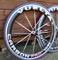 The world’s fastest wheelset? New hub design for straight-pull spokes Spoke paint marked by contact with hub Old-style hub houses cranked spoke ends 12 spokes enough for front wheel Machined...
