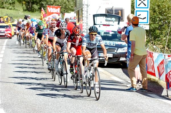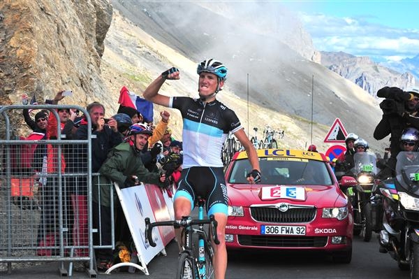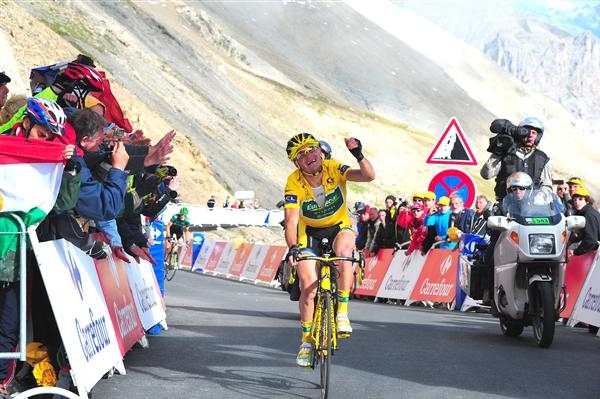 ON THE CHARGE: Andy Schleck continues his lone assault on the Col du Galibier