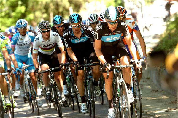 Rodriguez, wearing the maglia rosa for the first time in his career, sits safely in the bunch.
