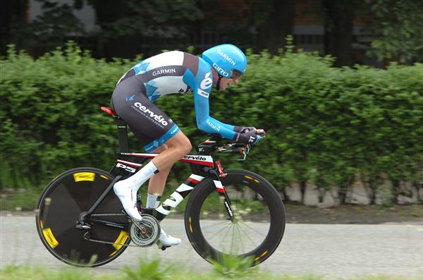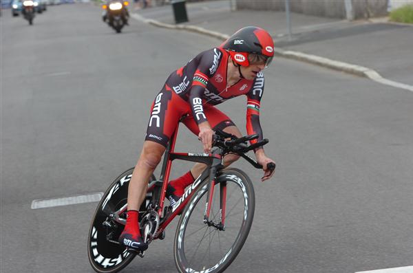 BMC Racing’s Marco Pinotto produced a storming ride to win the time trial by 39 seconds ahead of Team Sky’s Geraint Thomas.
