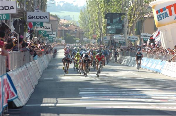 A four-man break consisting of Pier Paolo de Negri (Farnese Vini), Alessandro de Marchi (Androni), Olivier Kaisen and Brian Bulgac (Lotto-Belisol) went clear early in the stage.