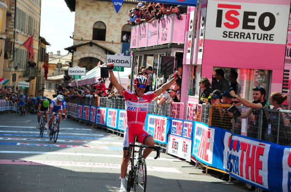 The medieval city of Assisi provided a stunning backdrop for a thrilling finale which saw Katusha’s Joaquim Rodriguez claim victory and move into the maglia rosa as a result.