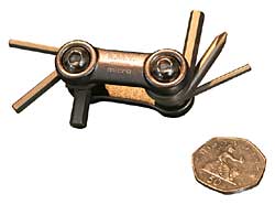 It’s a funny one, this. On the one hand it clearly isn’t as effective as a regular multi-tool. But despite ourselves we can’t help liking its tininess and somehow it’s cool dinkiness manages to almost offset its functional disadvantages. Don’t buy one as your only tool, but as a minimum weight seatpack backup or just for the hell of it as a funky bike gizmo…