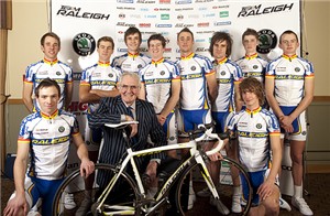 David Duffield, a legendary name in the world of cycling TV commentary and a past employee of Raleigh conducted the team launch, his opening speech detailing Raleigh’s impressive history in the sport. Chris Truett then introduced the 2010 riders who rode in astride their Raleigh Avanti Team bikes and lined up on the stage in the new kit which combines a modern look with a hint of the old Raleigh heritage.