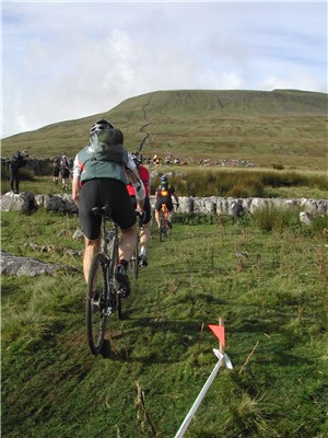 Held in the Yorkshire Dales, amidst majestic limestone upland scenery, the race takes competitors off-road and over the mountain tops of Ingleborough, Whernside and Penyghent, improbably aboard skinny-tyred cyclo-cross bikes. At the foot of each peak the gradient kicks up and the bike goes onto your shoulder and, once over the summits, rocky sections on the descents force most riders into taking some sweat-inducing risks.