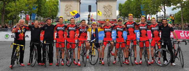 The stated goal of BMC Racing is to defend the title of team leader, Cadel Evans, but they have sufficient strength in depth to place strongly as a consequence of their efforts for the Australian. Marcus Burghardt, Steve Cummings, and George Hincapie will be a martialing force on the flat; keeping Evans at the front of the bunch and out of danger played a large part in the Australian’s success last year. Tejay Van Garderen and Amaël Moinard will provide support to Evans in the mountains. Evans and Van Garderen are good time trialists, and Manuel Quinziato can produce a decent effort against the clock on his day. Philippe Gilbert is likely to enjoy the support of the team on stages where the Belgian’s power can deliver victory (notably stage one from Liege to Seraing) but will also be a key team player on tough, rolling stages where his strength on the undulating terrain that typifies the Ardennes Clasics will be a vital asset to Evans (stage eight from Belfort to Porrentruy, for example).