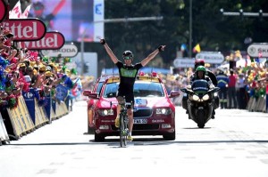 Meanwhile, yellow jersey Thomas Voeckler lost 27 seconds to a group of favourites that includes defending champion Alberto Contador and both Andy and Frank Schleck after running off the road on the technical final descent.