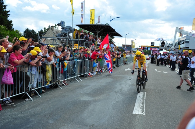 Riding at speeds of 40mph to crush his rivals, Wiggins delivered a masterclass in riding against the clock to win the stage by 1.16 seconds from highly talented teammate, Chris Froome.