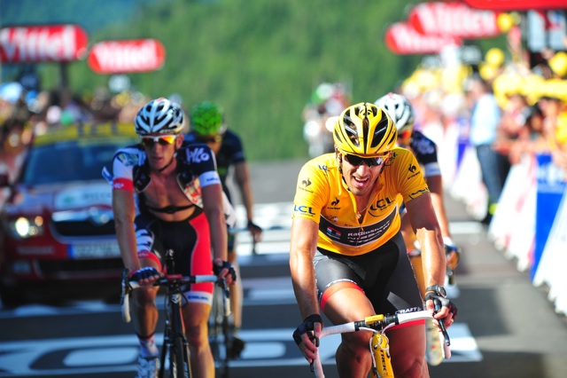 Fabian Cancellara put up a brave defence of his yellow jersey, but the stage ended with a change in the race lead
