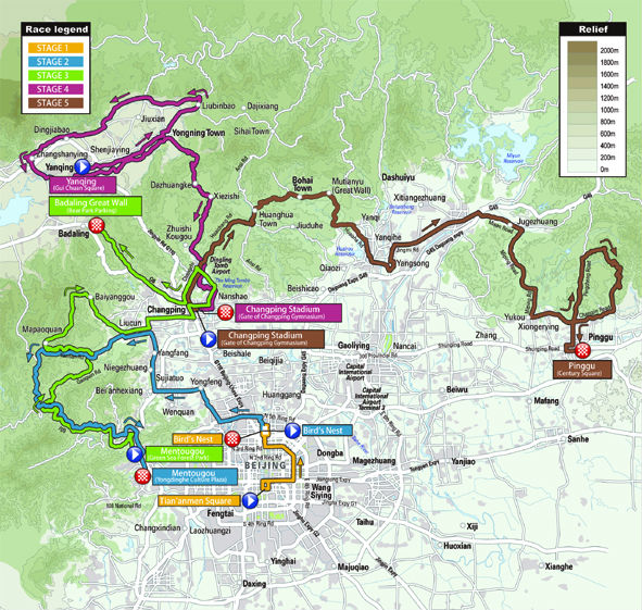 The time trial has been removed from the route, and the race instead starts with a 117km stage which will take the peloton from Tiananmen Square to the Bird’s Nest Olympic Stadium before 12 laps of an eight kilometre circuit.