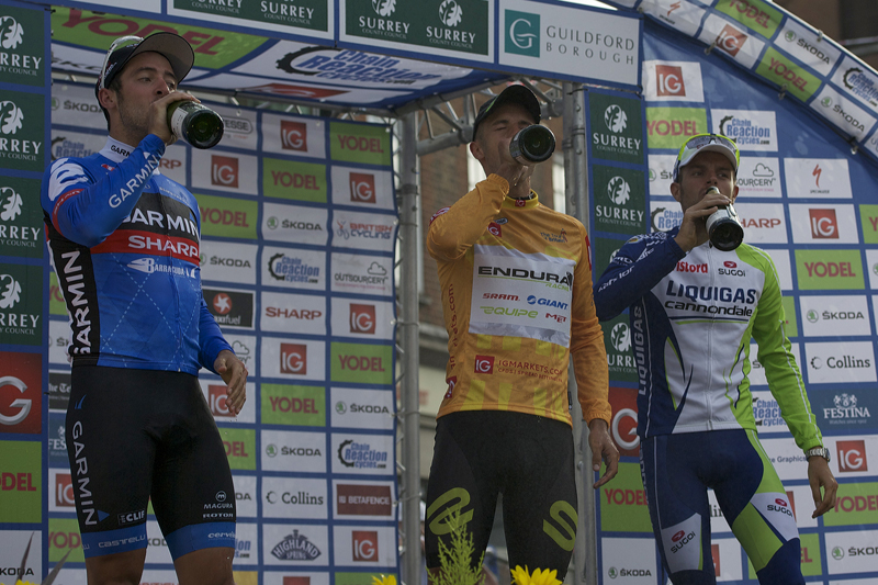 Newly changed from a champagne-soaked podium, Jon Tiernan-Locke arrived at the post-race press conference in the colours of Endura Racing. His final appearance in green and black?