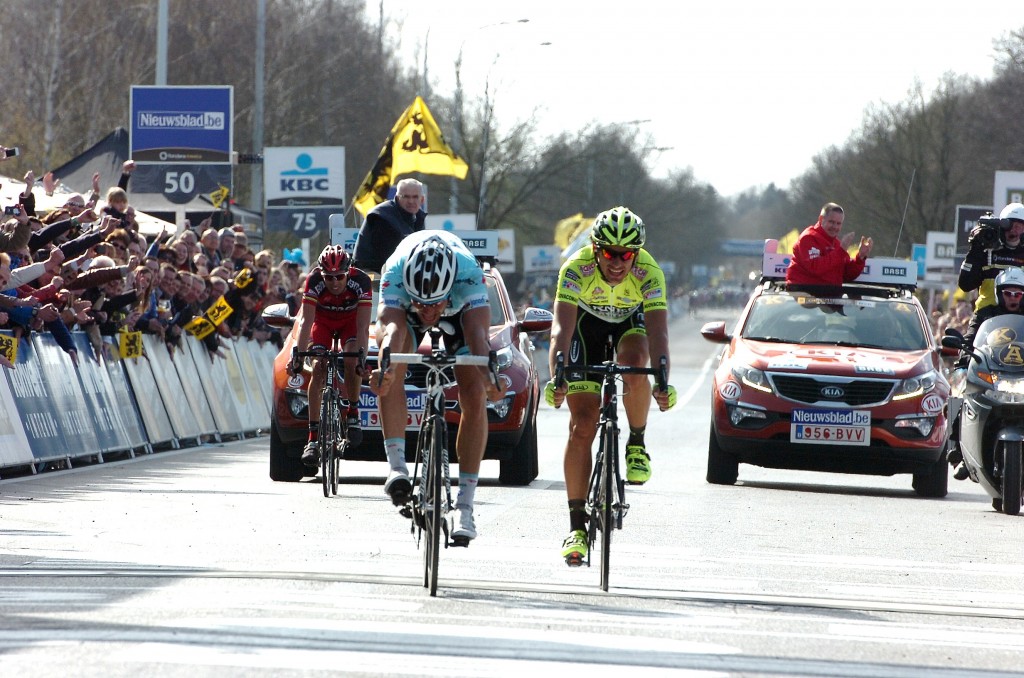 Ballan then attacked on the final ascent of the Oude Kwaremont, a 2.2km cobbled climb, with only Boonen and Pozzato able to follow the 2007 champion, with Luca Paolini (Katusha) and Edvald Boasson Hagen (Team Sky) making unsuccessful attempts to bridge the gap.
