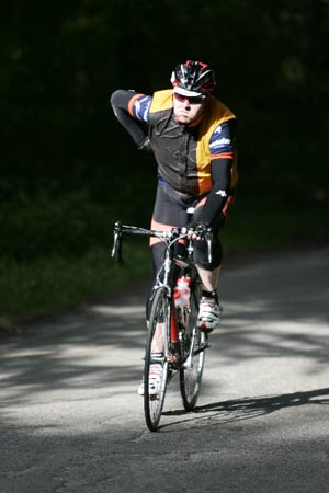 The first 5km were a magical mystery tour that seemed to set the scene for certain sections that would appear again in the last 17 miles. Again within the first 30km we had a comedy hill, unsure of it’s percentage but I’d make a guess at around 20%. Throwing hills like this into the ride so soon tends to separate the riders up, on a day when you’d preferred to have the shelter of a group to ride in. We hooked up with Salt (it said so on his jacket, sorry don’t know your real name) and Jules, two riders who were using the long weekend as final preparation for the Fireflies ride (good luck to them as it’s a 10 day ride in the alps for charity). In our small group of four it made for more pleasant riding than just plodding along in a twosome. Unfortunately Jules was suffering a few mechanical problems, so Salt pulled back and off we went. I would see them briefly again as they passed me while I was fixing my first puncture of the day.