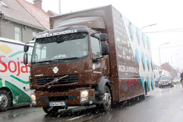 Lotto Belisol’s mechanics were the first to arrive on Kuurne’s Kattestraat, with Frederik Moons among the three-man team swapping cassettes from the aluminium wheels used for the previous day’s Omloop Het Nieuwsblad to deep section carbon hoops. Temperatures considerably colder than those at the team’s pre-season training camp in Valencia seemed of little concern to him. “This is Belgium,” he remarked dryly. “This is Classics weather.”