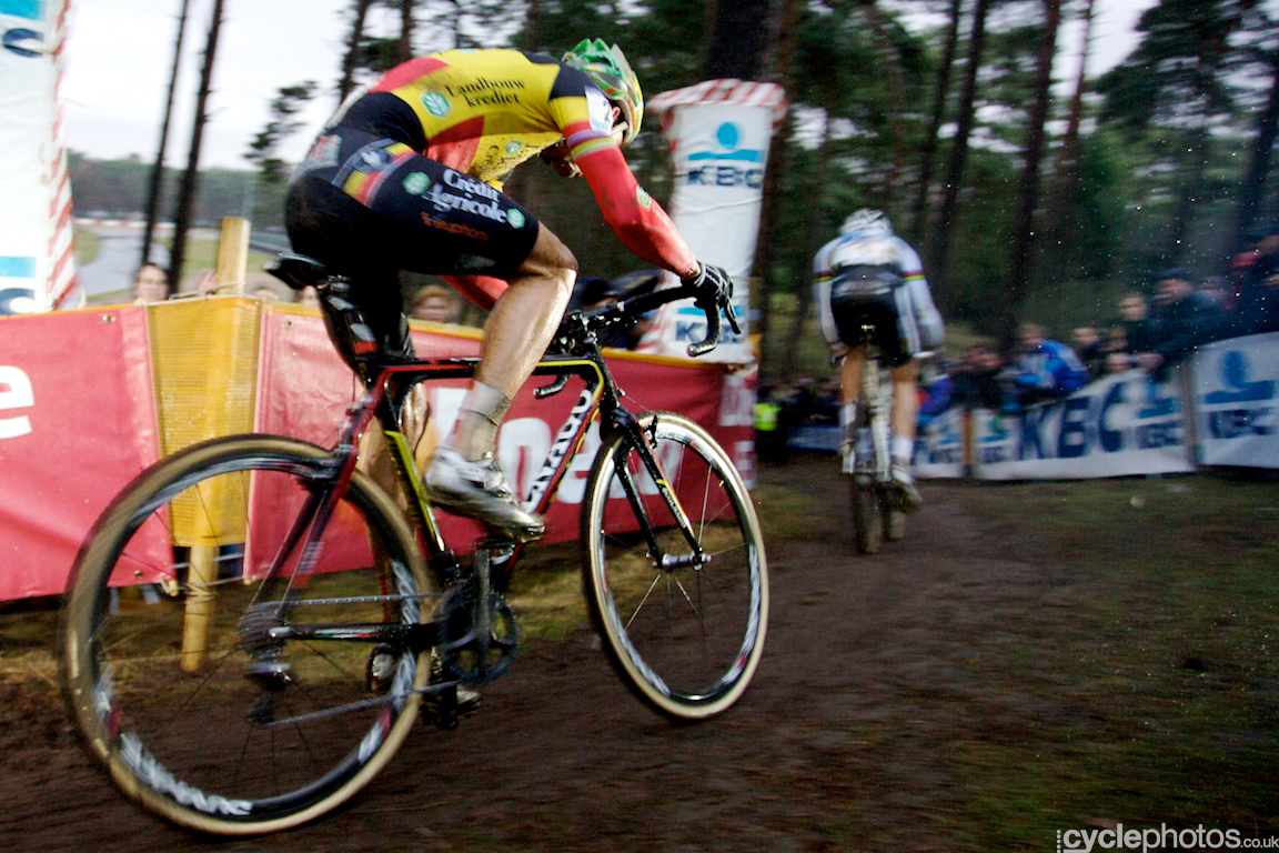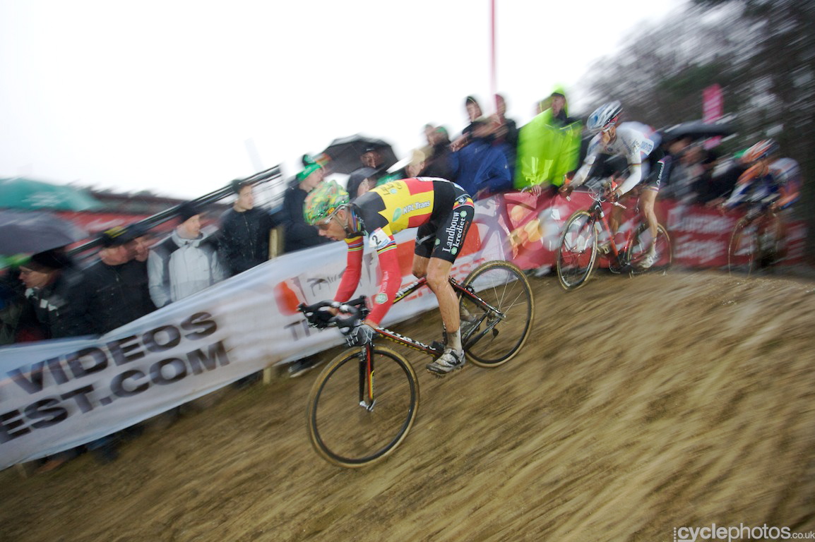 Sven Nys blunts the challenge of double world champion, Zdenek Stybar, with a fearless descent